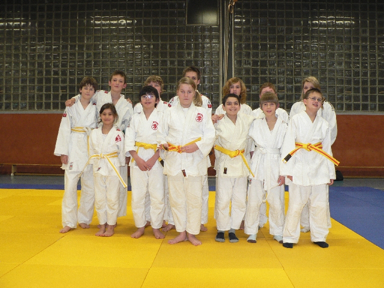 Die Prüflinge und ihre neuen Gürtel: weiß-gelb: Cedric Binger, Sara Madenci, Erik Renje, Marvin Moch, Alina Ucar, gelb: Anna-Maria Afanasjev, Yunus-Emre Aydin, gelb-orange: Jacqueline Hövekenmeyer, Suleyman Sulak, Stefan Kiss, grün: Steven Dörich, Jerome Schröer, braun: Angelique Ostwald, Mirko Püntmann und Markus Wagner.