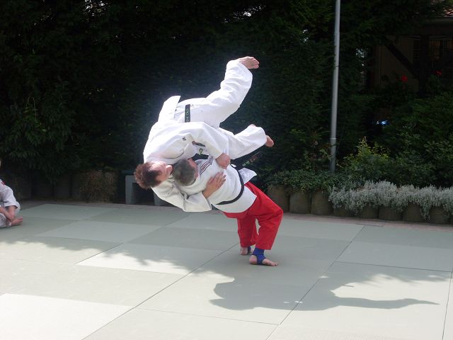 Dabei zeigten die Sportler zahlreiche Wurf-und Falltechniken und sorgten mit teils spektakulären Würfen für Begeisterung bei den Kleingärtnern. ,,Das muss doch weh tun, auf so einer harten Matte zu fallen‘‘ , war die Meinung vieler Zuschauer über die Leistung der Judoka. Doch das konnten diese nur mit ,,Nein‘‘ beantworten, denn das Fallen sei ,,das Erste, was man lernt, wenn man zum Judo kommt. Früher oder später gewöhnt sich jeder daran. ‘‘