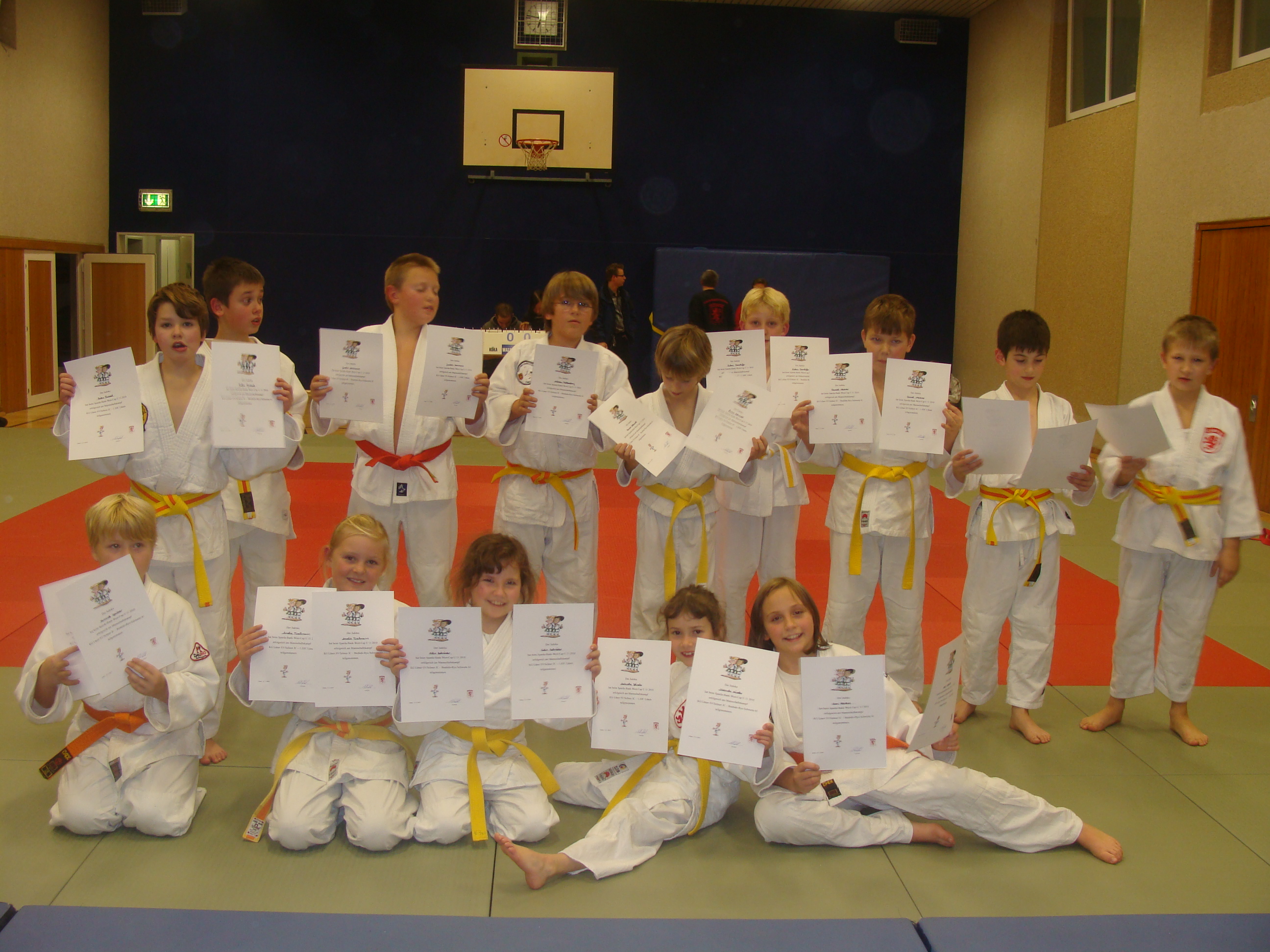 Die Judo-Kampfgemeinschaft des Lüner SV und des Selmer JC trat am Freitag zur Kreismannschaftsmeisterschaft der jüngsten Altersklasse U 11 - die offizielle Bezeichnung lautet "Sparda-Bank-West-Cup U 11" - an. Die Vorarbeit lag in den Händen von Lars Arnhölter vom LSV in Absprache mit der Kreisjugendleiterin Andrea Wohlgemuth.