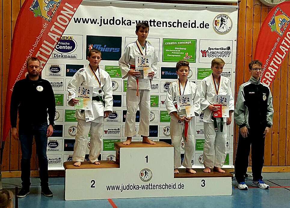 Sie besiegte ihre Gegnerin vom 1.JJJC Lünen zweimal deutlich mit Hüftwürfen. Auch Kevin Werchau schlug sich großartig und wurde 2. in der Klasse bis 43 kg der U 15. Er gewann drei Duelle und unterlag nur einmal.