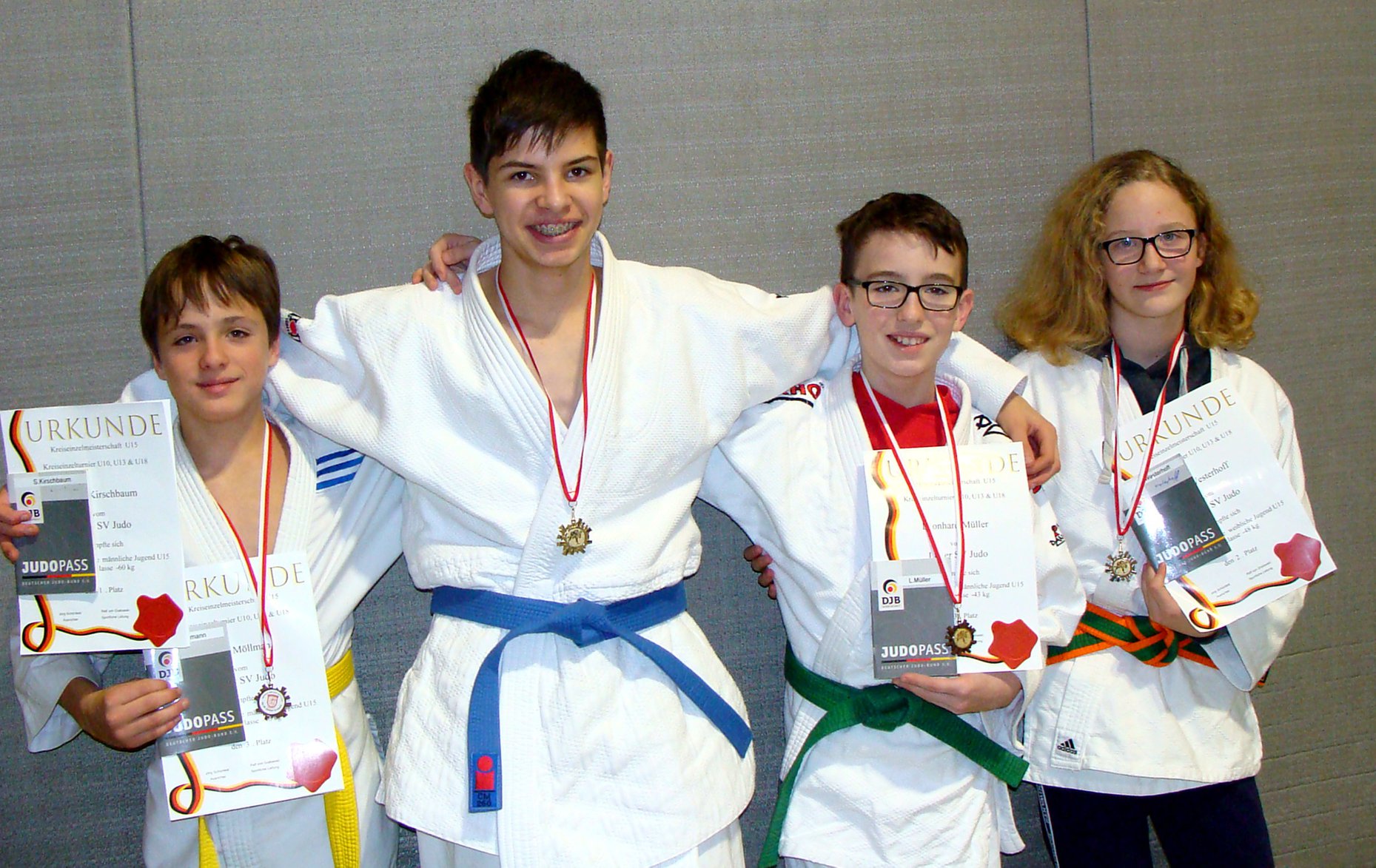 Die älteren Altersklassen U 15 und U 18 begannen, wobei die Mädchen und Jungen der U 15 sich für die Bezirksmeisterschaften qualifizieren mussten. Samuel Kirschbaum wurde in der Klasse bis 60 kg kampflos Kreismeister. Lynn Westerhoff gewann bis 48 kg Silber, gewann ein Duell. Leonard Müller wurde bis 42 kg ebenso wie Neuling Julian Möllmann bis 46 kg mit je einem Sieg Dritter. Alle vier qualifizierten sich also für die Bezirks-Titelkämpfe, die am Sonntag, dem 2.2. in Kamen ausgetragen werden.